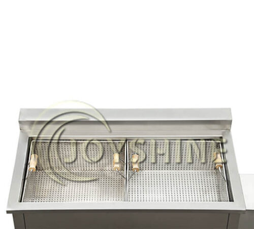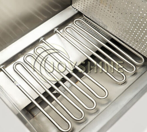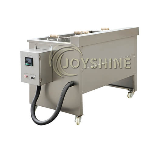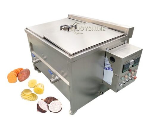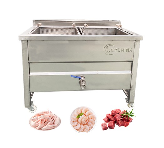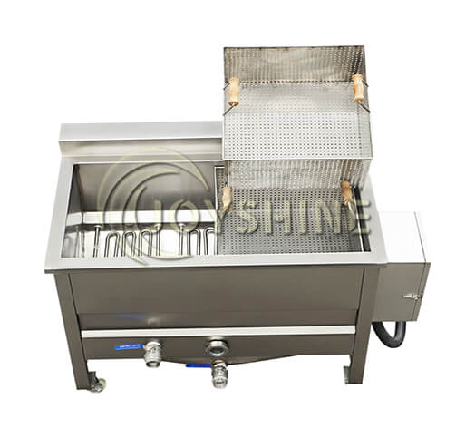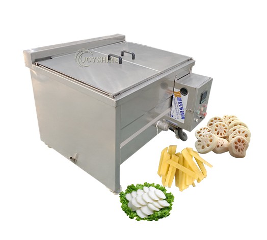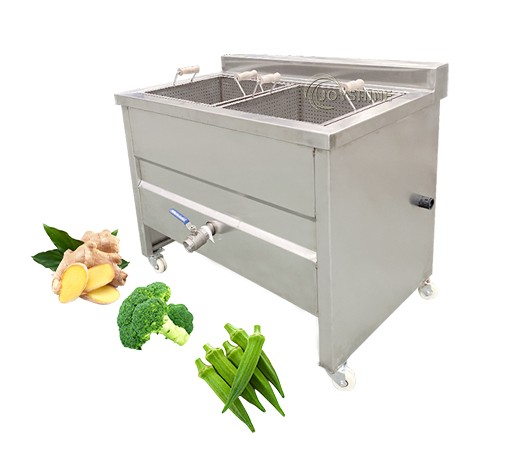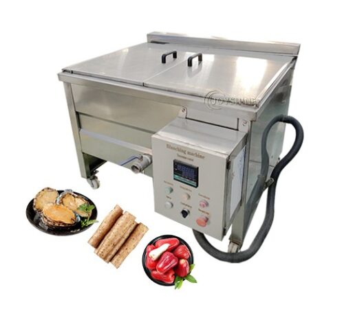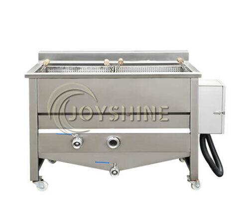 Esta máquina blanqueadora profunda estilo canasta semiautomática es adecuada para muchos tipos de productos, como carne, pollo, papas fritas, frijoles, maní, verduras y frutas, mariscos, etc.