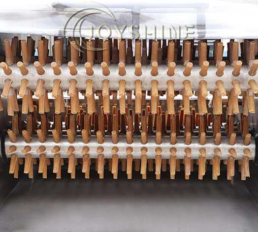 6. Los ejes realizan una rotación relativa para quitar las plumas.