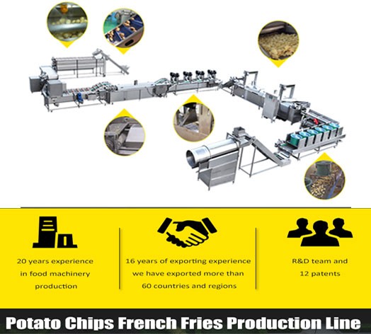 1. Capacidad de procesamiento de papas fritas francesas (capacidad terminada de 100 kg/h a 2000 kg/h), capacidad de procesamiento de papas fritas (capacidad terminada de 50 kg/h a 500 kg/h) y el flujo de trabajo se puede personalizar.